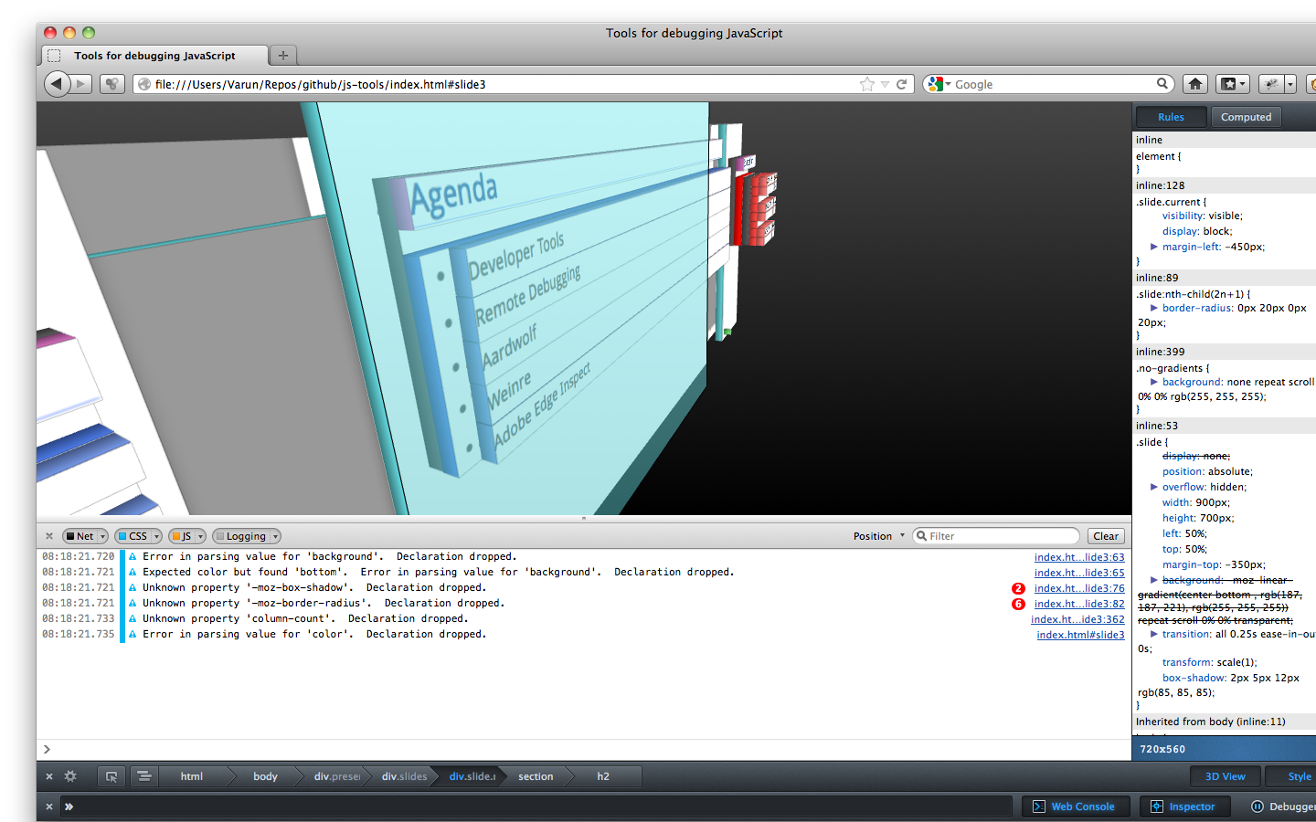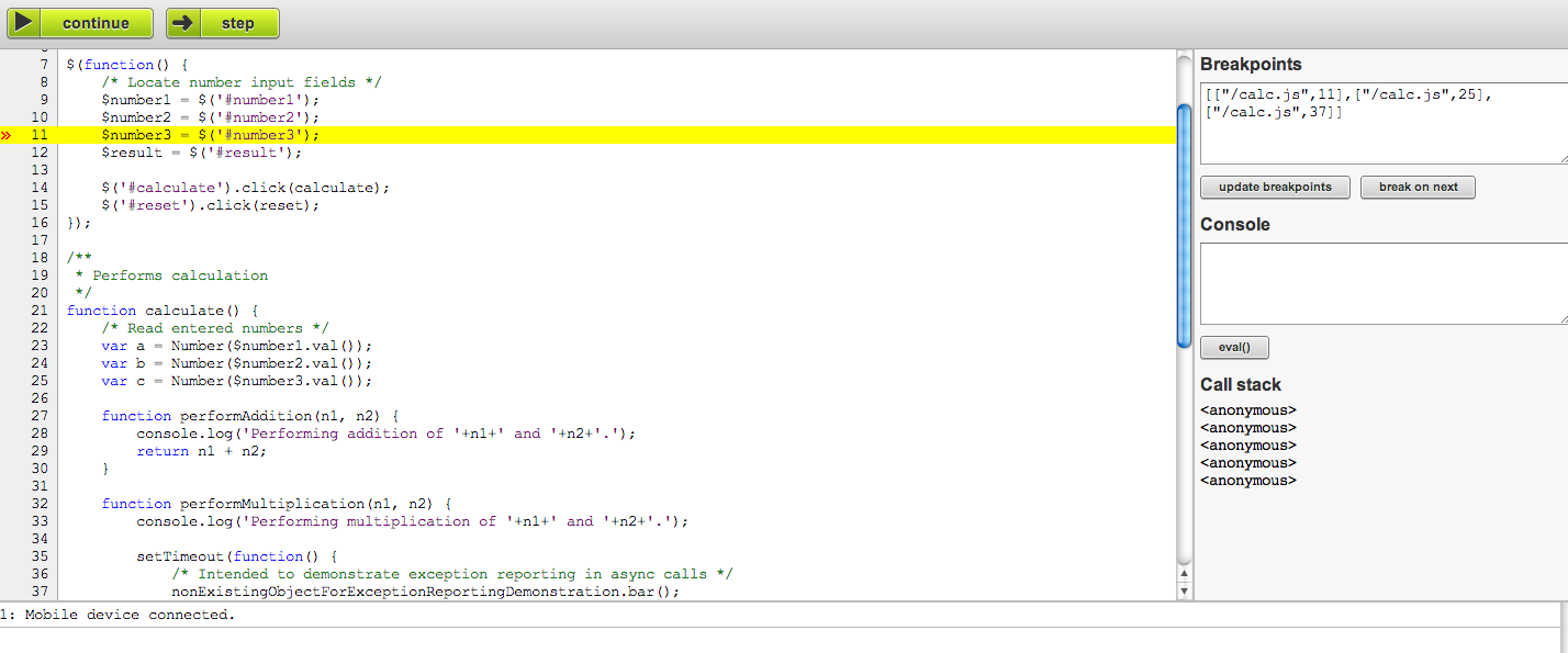 Lets you debug your JavaScript code.